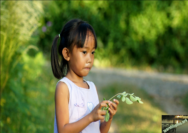 Girl holding a leaflet of Moringa